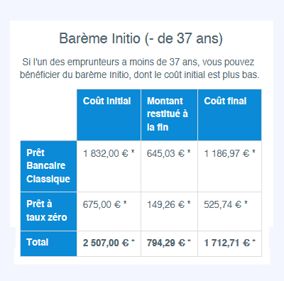 Notre calculatrice détaille le coût de la caution selon les prêts renseignés. Aussi, vous pouvez retrouver le coût de la caution à la fois pour le prêt bancaire classique, mais aussi pour le PTZ.